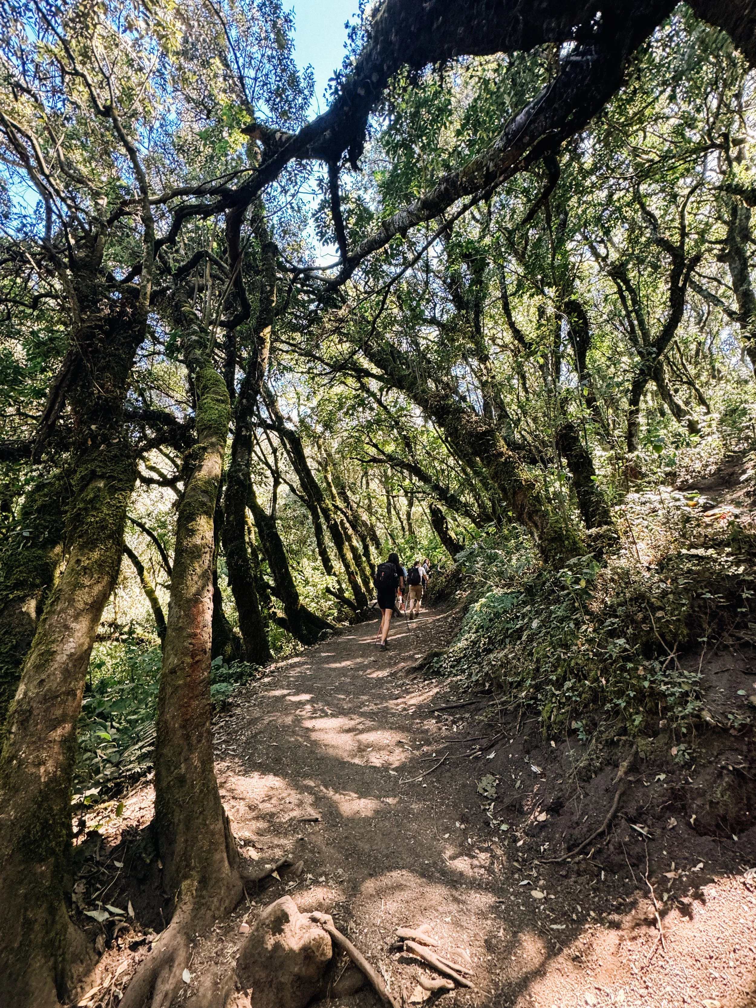 After we passed out of the ashy farmlands, we had a lot of tree cover and entered the cloud forest section of the hike. It stayed just as steep, but the gravel turned to dirt, and it became a lot less frustrating.